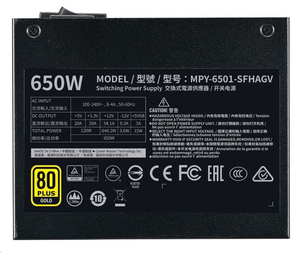 Cooler Master zdroj V650 SFX Gold, 650W, Plně modulární, 92mm, 80+ Gold