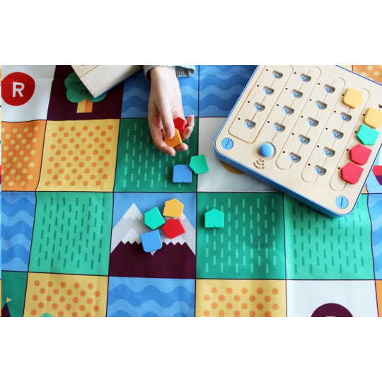 Diody vedle bloků na panelu ukazují jednotlivé kroky Cubetta. Děti tak mohou sledovat, v jaké fázi se robot nachází, a případnou chybu rychle odhalit a opravit. Ilustrované mapy navíc podporují fantazii a vybízejí k vytváření vlastních příběhů a dobrodružství. Cubetto+ je přístupný pro všechny děti.