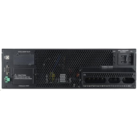 | Dodávka obsahuje | UPS; kryt Vstup/Výstup Terninal bloku ; uživatelská příručka; telefonní kabel; PowerPanel®Business Edition software CD; USB kabel typ A+B; kolejnice pro uchycení v racku; konzola pro montáž do racku (2+2); spojovací plát (2); lyžiny (2+2); sériový kabel; napájecí kabel; montážní sada |