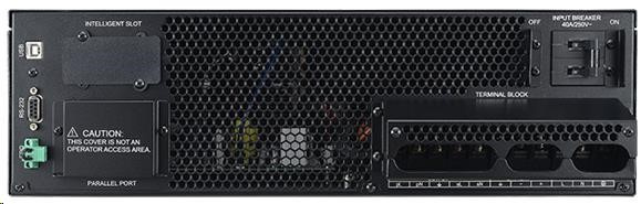 | Dodávka obsahuje | UPS; kryt Vstup/Výstup Terninal bloku ; uživatelská příručka; telefonní kabel; PowerPanel®Business Edition software CD; USB kabel typ A+B; kolejnice pro uchycení v racku; konzola pro montáž do racku (2+2); spojovací plát (2); lyžiny (2+2); sériový kabel; napájecí kabel; montážní sada |