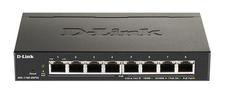D-Link DGS-1100-08PV2 8-port Gigabit Smart Managed PoE switch, PoE budget 64W, fanless