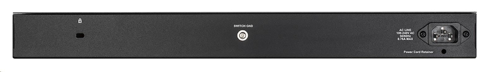 48-port 10/100/1000 Gigabit Smart Switch including 4 Combo 1000BaseT/SFP - 44 x 10/100/1000Mbps Auto-Negotiating Ports - 4 x Combo 1000BaseT/Mini-GBIC SFP ports - Jumbo frames up to 13000Bytes - 16K MAC addresses - 802.3az Energy Efficient Ethernet (EEE) by port power saving in idle mode - dlink|green 3.0, advanced power saving by schedule - Half-/Full-Duplex, auto-negotiation, Auto MDI/MDIX - IEEE 802.3x Flow Control - 802.3ad Link Aggregation - Asymmetric VLAN, Auto Voice/Surveillance VLAN - Traffic Segmentation - 802.1p priority queues - MAC/IP filtering - MAC/IP-based ACL - 802.1X port-base Access Control, Port Security - D-Link Safequare Engine - IPv6 Ready - D-Link Network Assistant Utility (DNA) from firmware ver. 4.1, web based management, compact CLI - D-View 6.0 support - 0 - 50°C operating temperature - 1x Smart fan - 19" Rackmount Installation.