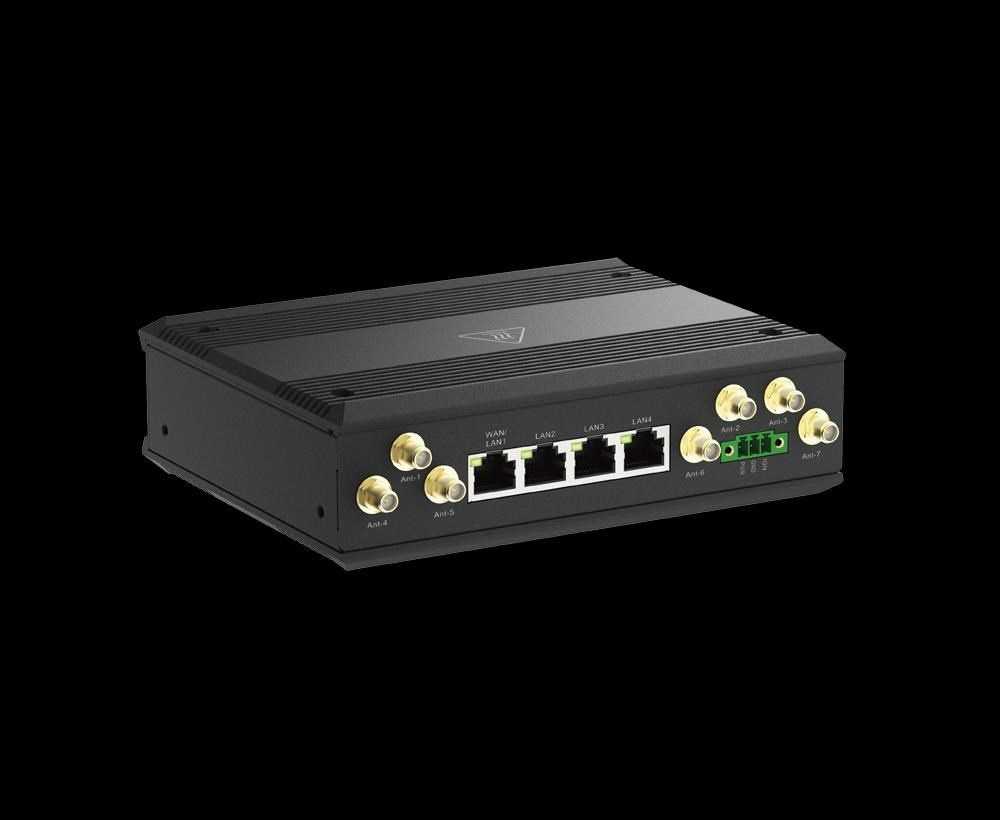 5G SA & NSA with dual SIM slots for cellular WAN failover redundancy 4 x Gigabit Ethernet ports Wi-Fi 6 AX1800 to connect multiple on-board devices 1 x IGN (Ignition Sense) for power control function GNSS for GPS/GLONASS -30 to 70°C operating temperature to resist harsh environments Wide voltage range input: DC 12-36V Mounting bracket allows for optimal device placement.
