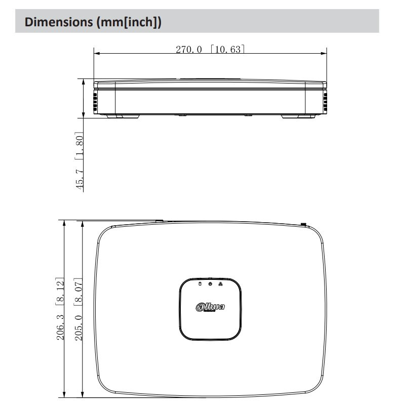 - Napájení: 53 VDC/ max. 10 W (měřeno bez HDD a PoE)