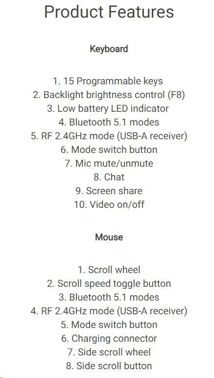 Rozhraní klávesnice:Bezdrátová; Lokalizace klávesnice:EN; Výbava klávesnice:Podsvícené klávesy.