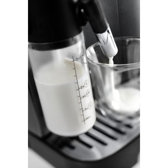 Popis produktu S kávovarem DeLonghi Magnifica Evo si vynikající kávu připravíte jedním stisknutím v pohodlí domova. Magnifica Evo není jen italské espresso s plnou chutí, ale na výběr máte až sedm různých receptů. Objevte intuitivní ovládání s barevnými tlačítky pro přímou volbu svého oblíbeného nápoje. Díky jedinečnému systém pěnění mléka LatteCrema bude vaše mléčná káva chutnat dokonale. S novou funkcí My Latte si navíc můžete svůj mléčný nápoj přizpůsobit podle libosti a uložit do paměti. DeLonghi ECAM 290.81.TB Klíčové vlastnosti Ocelový mlýnek s 13 stupni hrubosti mletí Osobní nastavení aroma, velikosti a teploty kávy Dotyková tlačítka pro volbu nápoje Automatická funkce čištění a odvápňování Parní tryska na pěnění mléka Tlak čerpadla 15 barů Klíčové vlastnosti Vždy čerstvě namletá káva Jemné a rovnoměrné mletí je základním předpokladem k získání toho nejlepšího aroma z kávy. Kávovary DeLonghi mají zabudovaný ocelový mlýnek se 13 stupni nastavení hrubosti mletí. Ocelové mlecí kameny jsou naprosto přesné, odolné proti poškození a neutrální vůči chuti kávy. Právě tento typ mlýnku používají i profesionální baristé. Navíc díky tzv. Tubeless systému se snižuje na minimum množství namleté kávy, která zůstává v mlýnku. Vaše espresso je tak připraveno vždy z čerstvě umleté kávy. Vždy čerstvě namletá káva Moderní systém ohřevu vody Termoblok Pro dosažení plného aroma z čerstvě namleté kávy je důležitá správná teplota vody, proto jsou kávovary DeLonghi vybaveny systémem Termoblok. Vysoce přesné elektronické ovládání zajišťuje optimální teplotu vody, aby bylo dosaženo perfektních výsledků v šálku. Výhodou systému je také tichý provoz a rychlé nahřátí celého kávovaru. Moderní systém ohřevu vody Termoblok Vyjímatelná spařovací jednotka Důležitou součástí kávovaru je tzv. spařovací jednotka, která dávkuje a pěchuje čerstvě namletou kávu tak, jako by to dělal profesionální barista. Patentovaná spařovací jednotka DeLonghi má nastavitelnou komoru, která dokáže zpracovat různé množství kávy podle druhu zvoleného nápoje. Navíc je vyjímatelná, aby bylo možné ji alespoň jednou za měsíc propláchnout pod tekoucí vodou bez nutnosti používat chemické čisticí přípravky. Vyjímatelná spařovací jednotka Vychutnejte si své oblíbené cappuccino Patentovaný LatteCrema systém vám připraví tak dokonalé cappuccino s hustou a krémovou mléčnou pěnou, že jej budete chtít pít každý den. LatteCrema systém si poradí i s napěněním sójového, mandlového či rýžového nápoje. Pro snazší údržbu a čištění mléčného systému je karafa vybavena funkcí automatického čištění, která spustí cyklus proplachování vodou a proudem páry. Kromě toho můžete všechny součásti karafy umýt v myčce nádobí. Ušetříte čas a budete mít jistotu, že je karafa dokonale čistá. Vychutnejte si své oblíbené cappuccino Nastavte si chuť své oblíbené kávy Objevte intuitivní ovládací panel s barevnými tlačítky pro přímou volbu svého oblíbeného nápoje. Aby však byla káva připravena vždy podle vaší chuti, je možné nastavit velikost a intenzitu kávy. Díky funkci My Latte si navíc můžete přizpůsobit váš oblíbený mléčný nápoj podle libosti a následně uložit do paměti přístroje. V nastavení je také možnost zvolit požadovanou teplotu vody pro přípravu nápoje. Nastavte si chuť své oblíbené kávy Užijte si další extra funkce kávovaru Při používání kávovaru určitě oceníte praktické funkce jako je nastavitelná výška adaptéru, možnost připravit pouze horkou vodu na čaj nebo dvě espressa současně pro úsporu času. V kávovaru je také možné použít předem namletou kávu, například bezkofeinovou. Aby připravené nápoje vydržely déle horké, disponuje kávovar praktickou funkcí nahřívání šálků. Užijte si další extra funkce kávovaru Jednoduchá údržba kávovaru Pro ještě lepší uživatelský komfort jsou kávovary DeLonghi vybaveny automatickým procesem čištění a odvápňování. Z vnitřního okruhu se zbytky kávy odstraňují již při zapnutí přístroje během automatického proplachování. Zároveň se nahřívá vnitřní okruh, aby měla káva správnou teplotu. Před vypnutím kávovaru se vnitřní okruh znovu propláchne a zbaví kávových usazenin. Kávovar sám ohlásí nutnost odvápnění a jednoduše vás provede jednotlivými kroky procesu odvápnění. Části kávovaru je také možné mýt v myčce nádobí. Jednoduchá údržba kávovaru Funkce automatického vypnutí Funkce automatického vypnutí umožní šetřit energii a pečovat o životní prostředí, i když na to sami zapomenete. Stačí jen nastavit jeden ze čtyř dostupných intervalů, po jejichž uplynutí se přístroj automaticky přepne do pohotovostního režimu. Nemusíte se bát ani o čistotu přístroje, protože před vypnutím se vnitřní okruh automaticky propláchne..