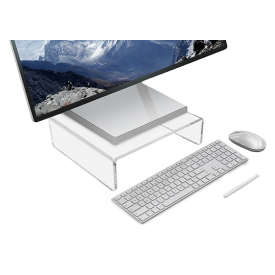 Tento monitorový stojan byl speciálně navržen pro All-in-One počítače, jako je Apple® iMac, ale skvěle se hodí i pro běžné LCD monitory. Vyroben z vysoce kvalitního čirého akrylu v moderním minimalistickém designu. Jednoduchý, ale pevný a stabilní design neruší a zároveň poskytuje maximální praktičnost. ? Vysoce kvalitní 6mm čirý akryl ? Speciálně navržen pro All-in-One počítače, jako je Apple® iMac ? Možnost umístění mini počítačů (např. Apple® Mac Mini) pod stojan ? Gumové nožky pro stabilitu a ochranu pracovní plochy ? Robustní konstrukce s nosností až 15 kg S DESQ stojanem na monitor zvýšíte obrazovku do ideální výšky, což podporuje zdravé a ergonomické držení těla a pomáhá předcházet bolesti zad, krku a očí..