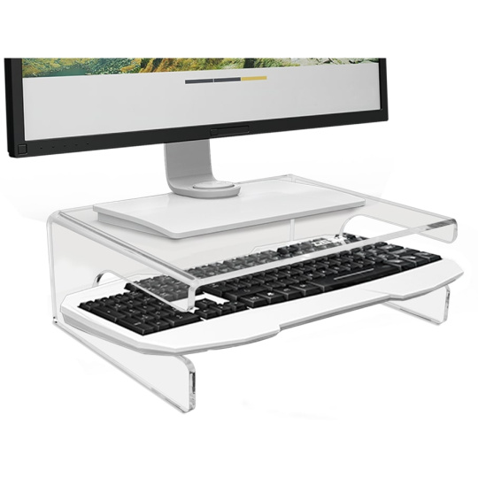 Monitorový stojan vyrobený z vysoce kvalitního čirého akrylu v moderním minimalistickém designu. Jednoduchý, ale pevný a stabilní design neruší a zároveň poskytuje maximální praktičnost. ? Vysoce kvalitní 6 mm čirý akryl ? Možnost uložení klávesnice pod stojan ? Mini počítače lze umístit pod stojan (např. Mac Mini) ? Gumové nožky pro stabilitu a ochranu pracovní plochy ? Nosnost až 15 kg – robustní a odolná konstrukce S DESQ stojanem na monitor zvýšíte obrazovku do ideální výšky, což podporuje zdravé a ergonomické držení těla a pomáhá předcházet bolesti zad, krku a očí..