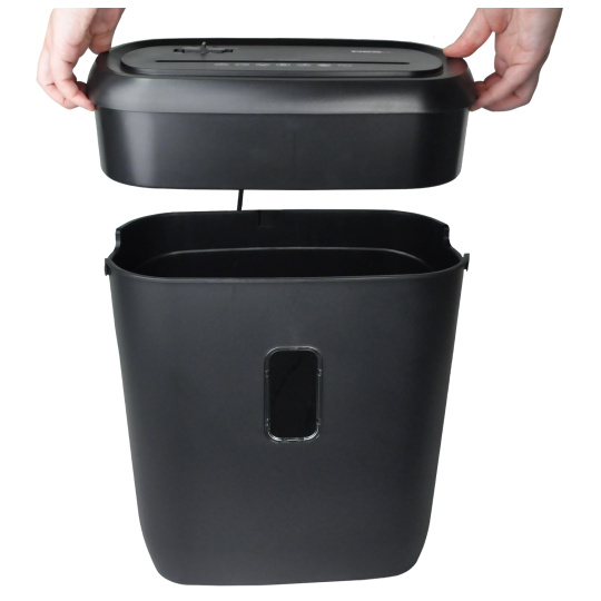 Výkonný křížový skartovač papíru s prostornou nádobou, ideální pro domácí kancelář a malé kanceláře. ? Skartuje papír (včetně spon) a platební karty ? Kapacita až 11 listů (A4, 70 g/m2) na jeden průchod ? Prostorná 21litrová nádoba – pojme až 200 listů skartovaného A4 papíru ? Bezpečnostní úroveň P-4 – rozřeže jeden list A4 na 440 částic ? LED indikátor přehřátí – ochrana proti přetížení ? Sledovací okénko nádoby – snadná kontrola zaplnění odpadu ? Možnost použití bez odpadního sáčku Pokročilé funkce: ?? Automatický start-stop a manuální zpětný chod – snadné odstranění zaseknutého papíru ?? Zařízení funguje pouze tehdy, pokud je nádoba správně umístěna – zvýšená bezpečnost ?? Tepelná ochrana – zabraňuje přehřátí skartovače Používejte skartovač doma i v kanceláři, aby se důvěrné dokumenty nedostaly do běžného odpadu..