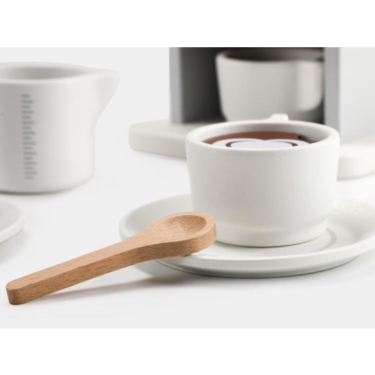 Dětský kávovar na zrnkovou kávu s příslušenstvím je krásnou a zábavnou dřevěnou hračkou i parádním doplňkem do dětské kuchyňky. S originálním příslušenstvím děti připraví nejen kávu, ale i zdobené cappuccino nebo kávu s našlehaným mlékem. Kávovar pro děti zdokonaluje motorické dovednosti, manuální zručnost, podporuje kreativitu, umožňuje dětem hrát role..