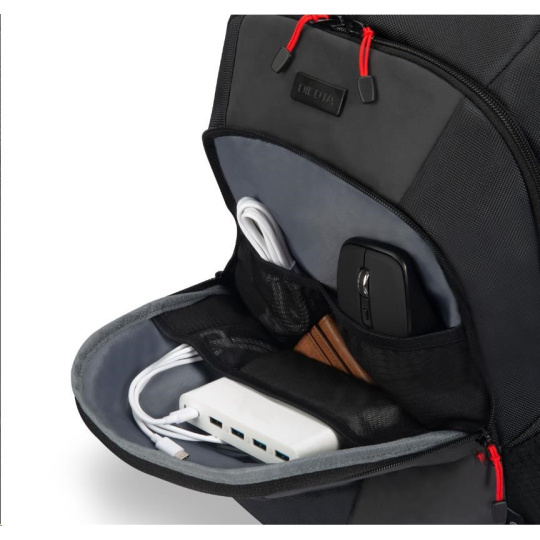 Skrytá kapsa na zadní straně slouží jako bezpečnostní kapsa a poutko na kolečkách