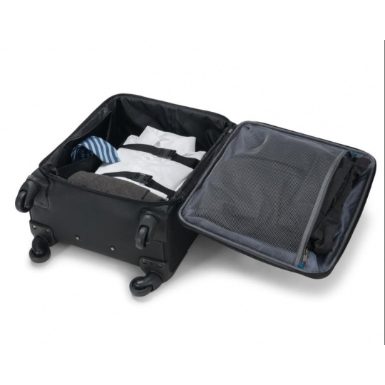 Fixační popruhy a vnitřní kapsy pro oděvy, obuv, toaletní potřeby.