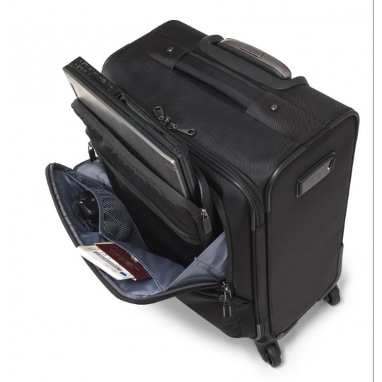 Cabin Roller PRO kombinuje vyjímečnou funkčnost se stylem a je ideální partner pro obchodní cesty. Odnímatelné polstrované pouzdro pro notebook do velikostí 15,6" nabízí optimální ochranu vašeho zařízení. Naleznete v něm také dodatečnou kapsu pro tablety až do úhlopříčky 12,9". Užijte si snadný pohyb se zavazadlem díky tichým kolečkům, které jsou otočné o 360 stupňů. Dvoustupňová teleskopická rukojeť je vyrobena z vysoce kvalitního hliníku. Robustní a vodu odpuzující vnější materiál je také odolný vůči znečištění, díky tomu bude tento kufr Váš dlouho trvající společník.