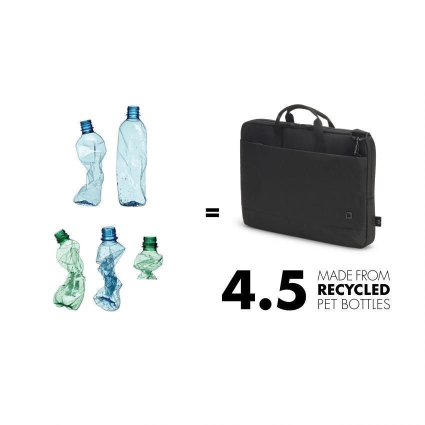 Characteristics • Made of 4.5 recycled PET bottles • Padded notebook compartment with high density foam (HDF) • Slip pocket for tablets up to 10.9" • Front pocket with storage space for mobile accessories • Document compartment on the back • Comfortable padded handle • Removable, adjustable shoulder strap • Water-repellent material
