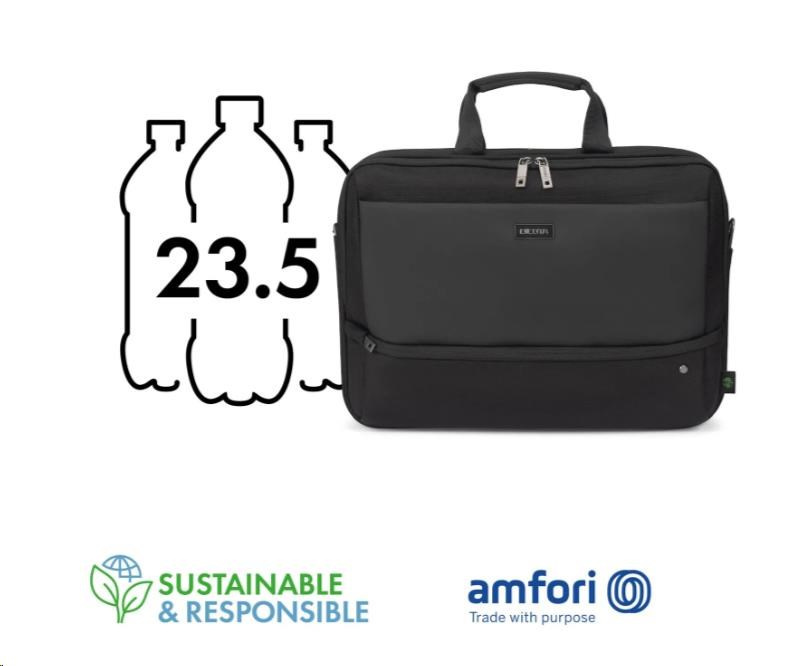 Brašna Top Traveller FIVE je navržena tak, aby chránila vaše zařízení a zároveň vám umožňovala snadný přístup k nezbytnostem. Uzamykatelná přihrádka na notebook s ochranou DCT Notebook Protection a polstrováním rohů z HDF pěny a EVA zajišťuje maximální bezpečnost, zatímco integrovaná kapsa poskytuje bezpečné uložení tabletů do velikosti 12,9". Hlavní přihrádka nabízí dostatek prostoru pro dokumenty, složky nebo mobilní vybavení a přední část obsahuje uspořádané kapsy na příslušenství. Malá přední kapsa poskytuje další úložný prostor pro kabely a menší předměty. Vyrobeno z 23,5" recyklovaných PET lahví.