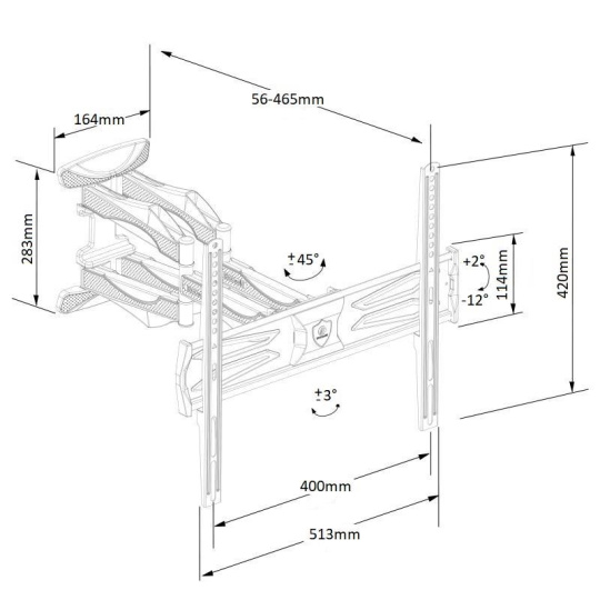 Dizajnový držák na Tv Ergosolid CEROS-R3 Držák na Tv 32-60", otočný +/-75°, sklopný +2°/-12°, nastavitelná délka 56-465mm, VESA 200x100 až 400x400, poctivá dizajnová konstrukce, nosnost 30kg Polohovatelný držák na televizory, který se vyznačuje bytelnou konstrukcí a snadným nastavením obrazovky do požadované pozice. Držák umožní zavěšení Tv jak na stěnu, pilíř, sloupek, tak i do rohu místnosti nebo připraveného výklenku. Svými dispozicemi je ideální pro zavěšení obrazovek s velkostí 32" až 60" (80cm až 152cm). Držák podporuje VESA standardy 200x100 až 400x400 a je možné ho zatížit obrazovkou s hmotností až 30kg. V případě nepřesné montáže nebo nerovnosti stěny držák umožňuje korigovat rovinu obrazovky. Barevné provedení černé. Záruka 3 roky. Držák je dodáván včetně instalačního materiálu a designových krytek na ramena i nástěnný úchyt, které umožňují skryté vedení kabeláže. Držák na televizory s dizajové konstrukce, otočný, sklopný, délkově nastavitelný. Držák je vhodný na LCD, LED, OLED, Smart, prohnuté obrazovky. Nosnost 30kg. Ergosolid CEROS-R3 Technické údaje: nosnost 30kg na televizory a monitory s úhlopříčkou 32" až 60" držák podporuje VESA standardy pro zavěšení obrazovky 200x100 až 400x400 otáčení do stran +/- 75° náklon nahoru až +2° , náklon dolů až -12° korekce roviny obrazovky +/- 3° nastavení vzdálenosti od stěny 56mm až 465mm dizajnové krytky na ramena a nástěnný úchyt, které umožňují skryté vedení kabeláže poctivá celokovová konstrukce vysoká pevnost, bytelné provedení výborný poměr cena / užitná hodnota instalační materiál součástí balení barevné provedení černé záruka 3 roky Držák na televizory Ergosolid CEROS-R3 podporuje VESA standardy: VESA 200x100 VESA 200x200 VESA 300x100 VESA 300x200 a 200x300 VESA 300x300 VESA 400x200 a 200x400 VESA 400x300 a 300x400 VESA 400x400 Dizajnový nástěnný držák na Tv 32-60 palců Ergosolid CEROS-R3 zajistí stabilní a bezpečné zavěšení televize na stěnu, pilíř, sloupek nebo do rohu místnosti, i do výklenku. Na držák CEROS-R3 je možné zavěsit všechny typy, značky a velikosti televizorů, které mají hmotnost maximálně 30kg a které podporují některý z výše uvedených VESA standardů. Na úhlopříčce obrazovky při splnění těchto podmínek nezáleží..