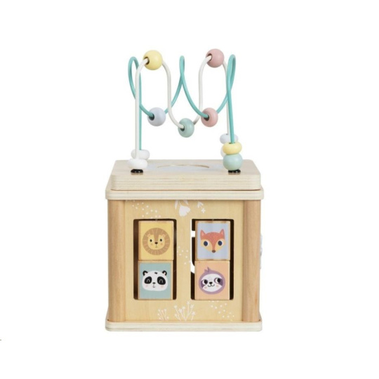 Dřevěná kostka s aktivitami představuje hned 5 hraček v jedné. Každá strana aktivity kostky je originální, přináší nové dobrodružství a zdokonaluje dětské dovednosti. Hrací prvky, pastelové barvy a zvířátka z lesa i ze ZOO motivují děti ke hře a pečlivému prozkoumání. Děti při hře s activity cube zdokonalují motorické dovednosti, koordinaci, logické myšlení, učí se soustředit a trpělivosti.