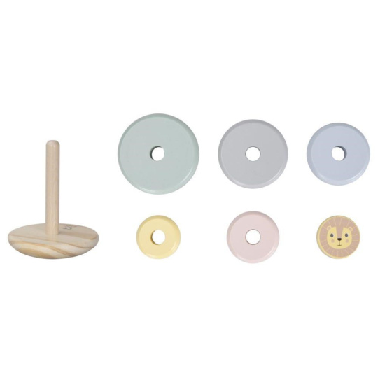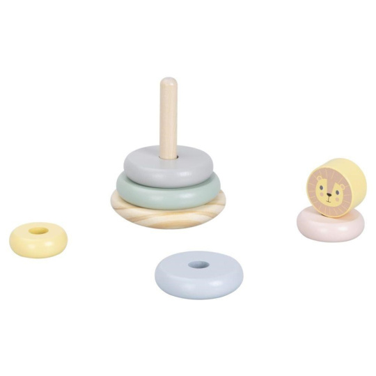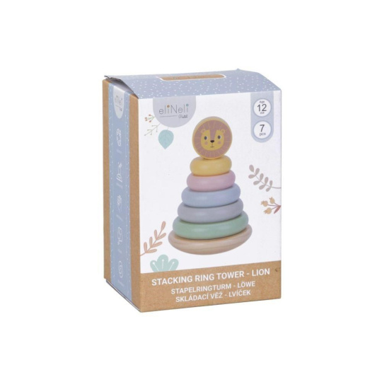 Skládací věž (pyramida) je oblíbenou dřevěnou hračkou, která nesmí chybět v žádném dětském království. Skládací věž s kroužky v jemných pastelových barvách a lvíčkem zdokonaluje jemnou motoriku, koordinaci očí a rukou, logické myšlení, učí děti poznat rozdíl mezi větší a menší, soustředit se a trpělivosti..