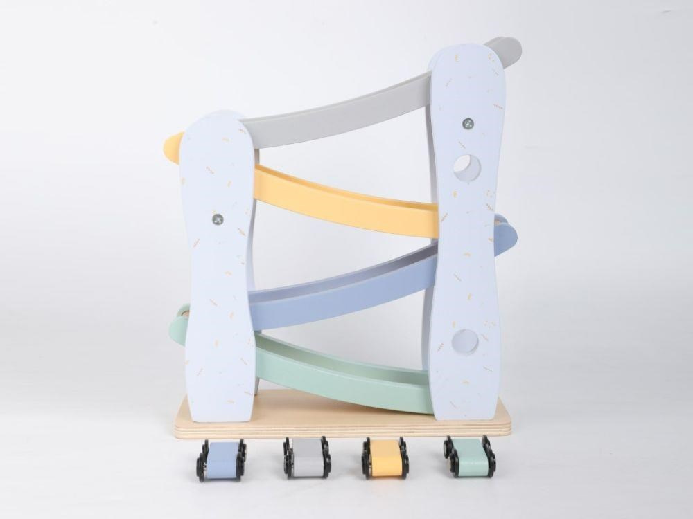 Dřevěná závodní dráha (autodráha) v krásných pastelových barvách, se 4 barevnými autíčky, probudí duši závodníka v každém dítku a nejspíš i v rodičích. Uspořádání závodů se závodními auty přímo v dětském pokoji je zábavnou hrou pro celou rodinu. Rozhodující při této hře je správná koordinace, přesnost, chvíle soustředění, zkrátka správně umístit závodničku na vrchol závodní dráhy..