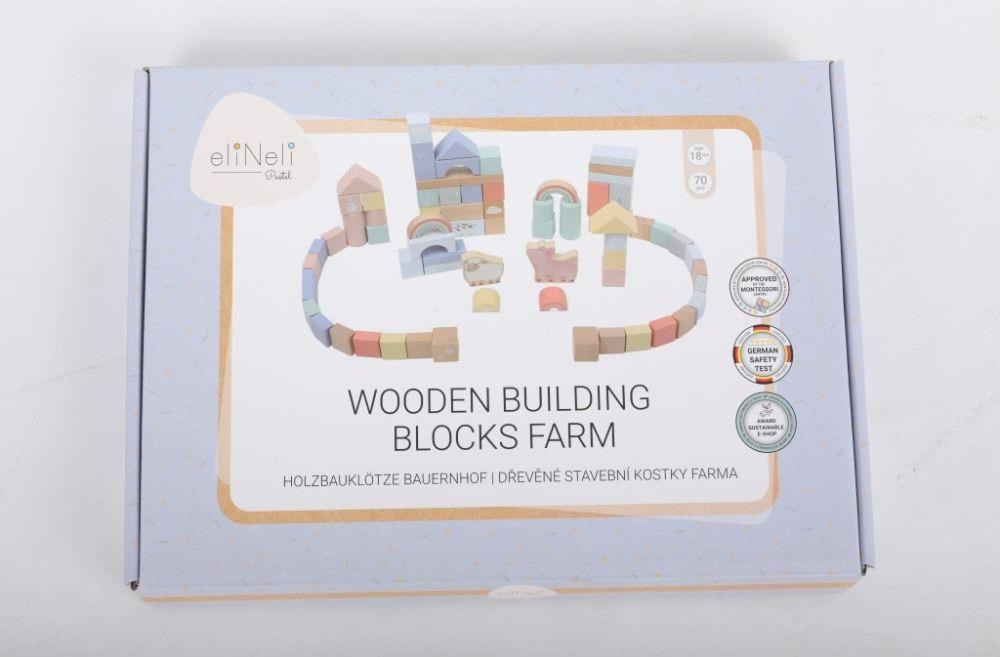 Dřevěné stavební kostky pro děti - Farma (70 ks)