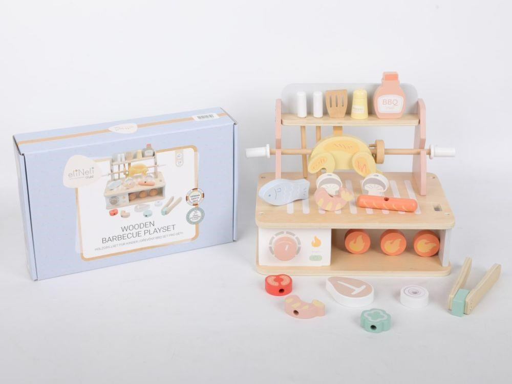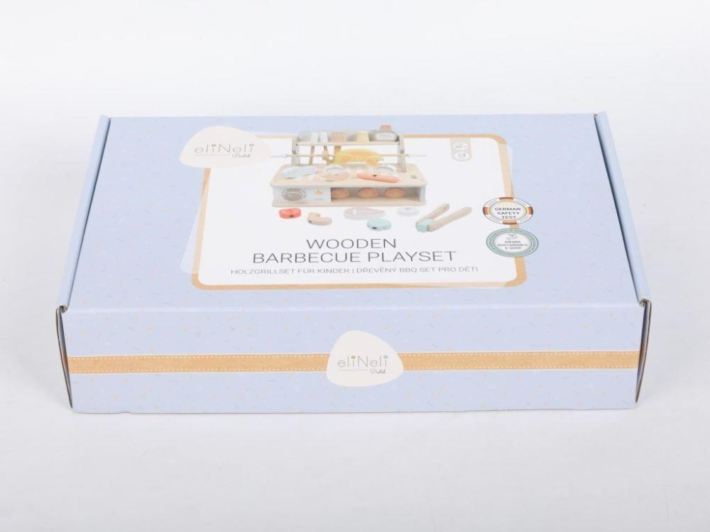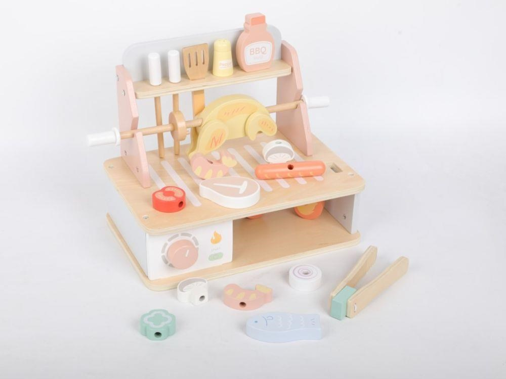 Dřevěný gril s bohatým příslušenstvím umožní dětem vyzkoušet si grilování bezpečným dětským způsobem. Uspořádat Barbecue slavnost bude hračkou a velkou zábavou. Žádná letní grilování se neobejde bez různých druhů masa, zeleniny a omáček, to vše v BBQ sadě najdete, včetně dalších doplňků pro přípravu masa a špízu. S dětskou BBQ sadou můžete grilovat celý rok, kdekoliv a v jakémkoliv počasí..