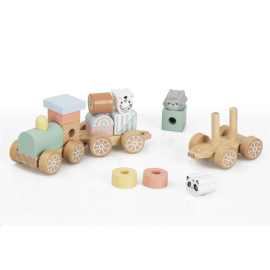Dřevěný vláček pro děti, s kostkami a zvířátky ze ZOO, je krásnou multifunkční hračkou i dekorací do dětského pokoje. Jemné pastelové barvy propůjčují vláčku lákavý vzhled a díky neutrálním barvám je vhodným dárkem pro holčičky i kluky. Dřevěné kostky a oblíbená zvířátka mohou děti povozit po svém pokojíčku i po celém domě či bytě. Děti si mohou hrát se samotným vláčkem, s jeho jednotlivými vagónky, nakládat a vykládat kostičky a zvířátka, vytvářet různé kombinace nebo si hrát se samotnými kostkami. Při hře s vláček a jeho částmi děti zdokonalují motorické dovednosti, koordinaci očí a rukou, logické myšlení, rozvíjí logické myšlení a kreativitu.