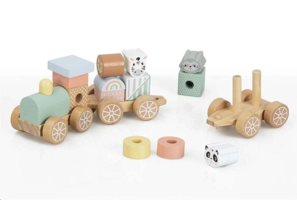 Dřevěný vláček pro děti, s kostkami a zvířátky ze ZOO, je krásnou multifunkční hračkou i dekorací do dětského pokoje. Jemné pastelové barvy propůjčují vláčku lákavý vzhled a díky neutrálním barvám je vhodným dárkem pro holčičky i kluky. Dřevěné kostky a oblíbená zvířátka mohou děti povozit po svém pokojíčku i po celém domě či bytě. Děti si mohou hrát se samotným vláčkem, s jeho jednotlivými vagónky, nakládat a vykládat kostičky a zvířátka, vytvářet různé kombinace nebo si hrát se samotnými kostkami. Při hře s vláček a jeho částmi děti zdokonalují motorické dovednosti, koordinaci očí a rukou, logické myšlení, rozvíjí logické myšlení a kreativitu.