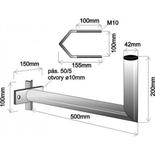 Držák antény na stožár s vinklem, délka 50cm