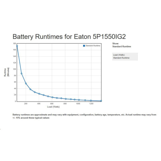 - UPS 5P může měřit energetickou spotřebu v kWh, kterou lze sledovat buď na LCD nebo pomocí softwaru Eaton Intelligent Power® Software Suite.