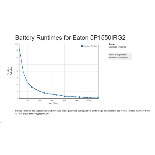 - UPS 5P může měřit energetickou spotřebu v kWh, kterou lze sledovat buď na LCD nebo pomocí softwaru Eaton Intelligent Power® Software Suite.