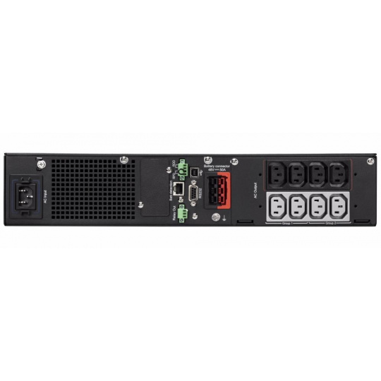 | Komunikace | USB port (kompatibilní s HID) Sériový port (RS232) Mini svorkovnice pro dálkové zapnutí / vypnutí (ROO) a vzdálené vypnutí (RPO) Mini svorkovnice pro výstupní relé Bezpotenciálové kontakty (3 výstupy, 1 vstup, optočlen, DB9) |