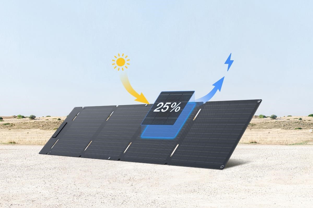 EcoFlow 60W přenosný panel (typ-C) využívá pokročilou technologii solárních článků s vysokou účinností, která dosahuje 25 %. Je snadno přenosný a díky vysoké odolnosti a zároveň nízkým nárokům na údržbu představuje ideální zdroj dobíjení při aktivitách mimo dosah elektrické sítě.