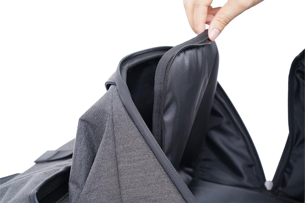 Náš batoh s objeme 30 litrů je schopný pojmout notebook o uhlopříčce až 15,6 palců. Navíc se do něj vejdou další věci denní potřeby, jako je oblečení, knihy, láhev s pitím a deštník. Jeho možné zvětšit až na rozměr 42 cm x 12 cm x 32 cm, nebo naopak zmenšit na rozměr 38 cm x 12 cm x 32 cm.