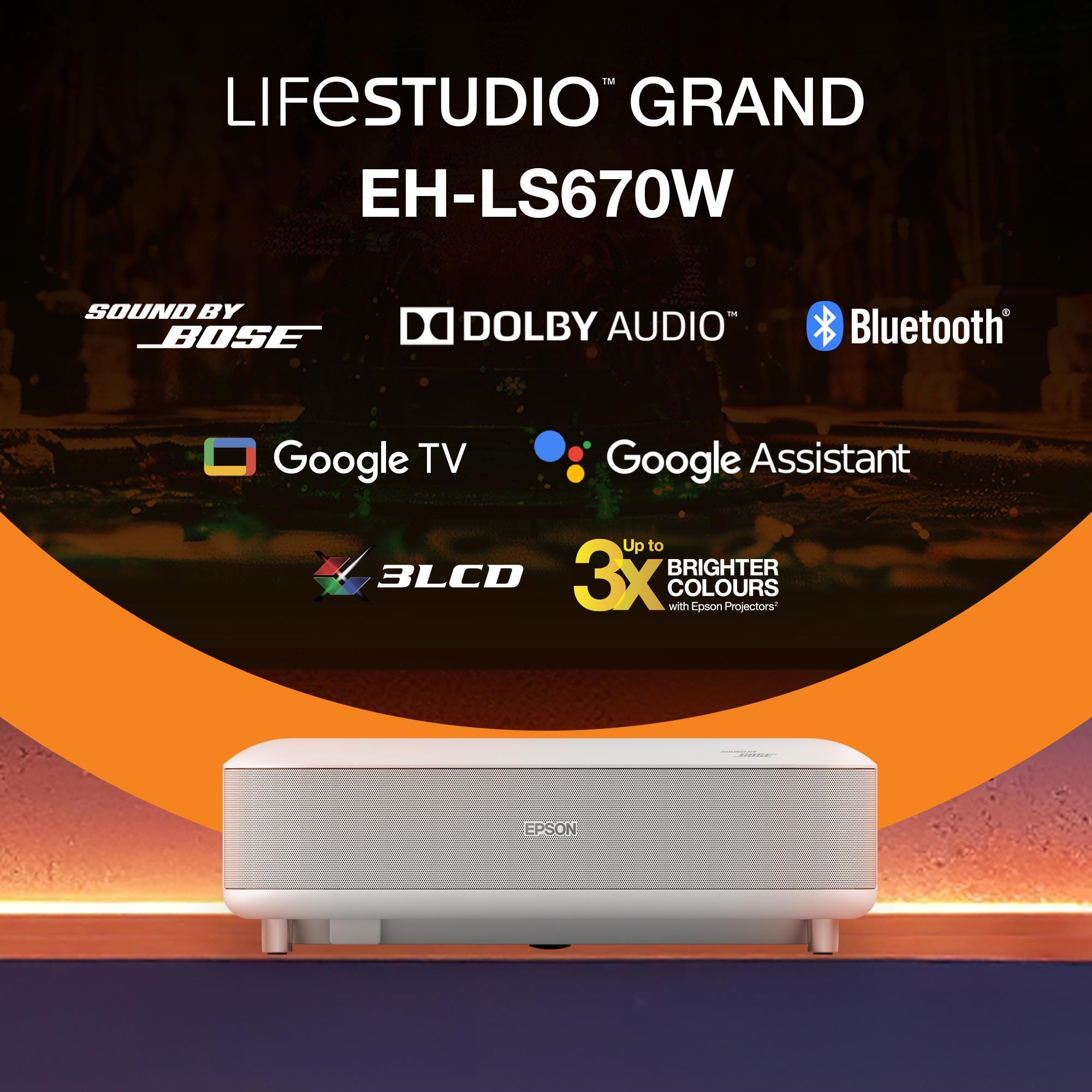 Epson Lifestudio Grand – EH-LS670W diamantová bílá, 4K PRO-UHD, 3600lm, HDMI, USB, Google TV, 240Hz