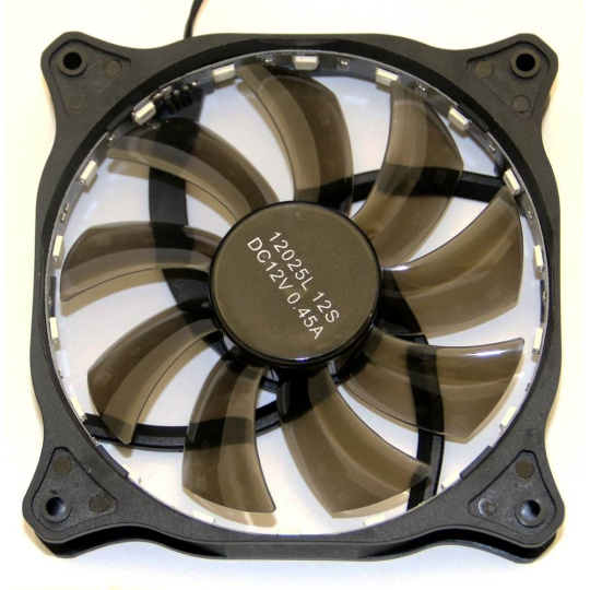 Přídavný 12 cm ventilátor s RGB LED podsvícením a antivibračními držáky. Rozsviťte svou PC skříň různými barvami. Možnost dokoupení dálkového ovládání. Obsahem balení je jeden ks vetilátoru. Otáčky větráku (ot/min): 1000 Průtok vzduchu (CFM): 44 Úroveň hluku (dB): 16.