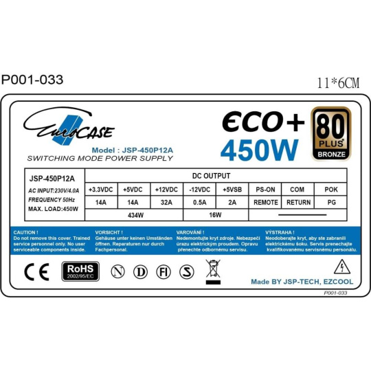 EUROCASE zdroj 450W Eco+, 120mm, 80+ Bronze, ATX