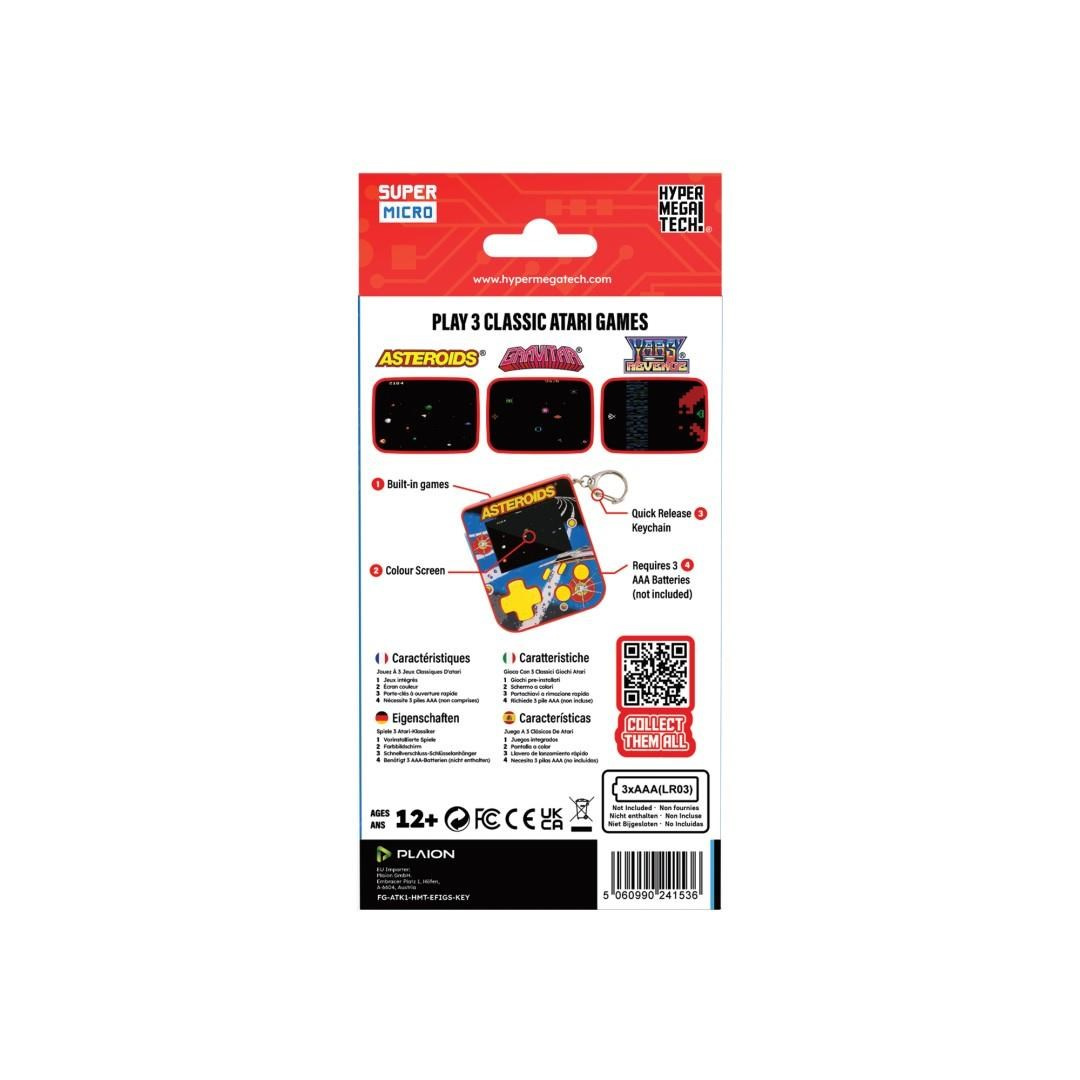 Retro hraní v mikro rozměrech díky klíčence Super Micro Asteroids Keychain Gamer od HyperMegaTech! Obsahuje tři skvělé hry od Atari: Asteroids, Gravitar a Yars Revenge. Dvoupalcová obrazovka RGB umožňuje maximální hratelnost a ovládání hlasitosti na tu správnou míru z ní dělá víc než jen cetku. Vyžaduje 3 baterie AAA (nejsou součástí balení).