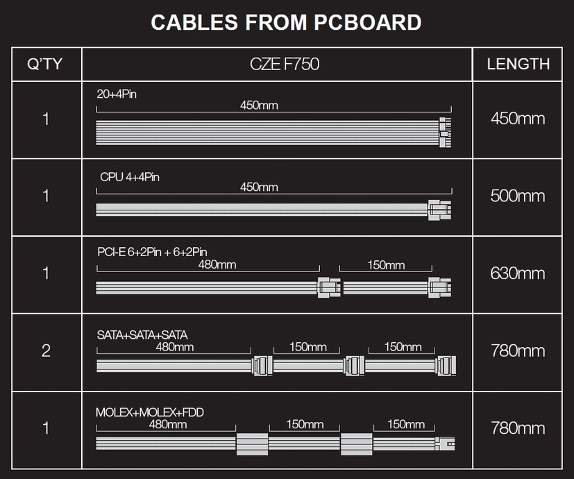 • PCI-E (6+2) +(6+2)pin (480+150mm)