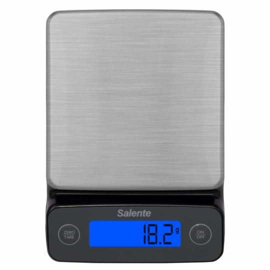 Váha Salente DiamondCook je unikátní kombinací klasické kuchyňské váhy s váživostí do 3 kg a přesné desetinné váhy schopné navážit např. 5 gramů kávy, 8 gramů droždí nebo přesnou dávku léčiv s přesností na 0,1 gramu.