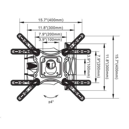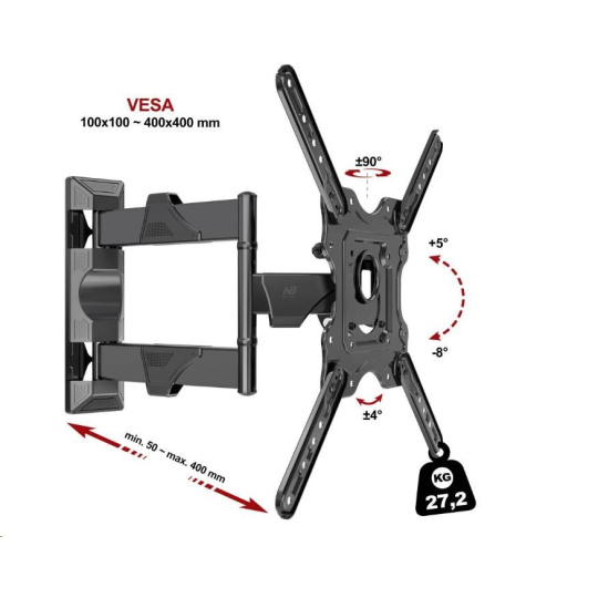 Kompletní specifikace Fiber Mounts DF400 - vynikající kloubový držák na televizory    Nástěnný držák na LCD LED QLED plazma Tv 32-55", otočný do stran až +/-90°, naklápění Tv +5°/-8°, korekce roviny +/-4°, vzdálenost Tv od zdi 50-400mm, VESA 100x100 až 400x400, úchytky na kabely, nosnost 27,2kg     Kvalitní držák na Tv vynikající konstrukce, který je pevný, stabilní, velmi bezpečný a snadno nastavitelný. Otáčení do stran, náklon dolů i nahoru, změna vzdálenosti od zdi, korekce roviny a montáž jsou u tohoto držáku hračkou, kterou zvládne opravdu každý. A díky velmi výhodné ceně si jej může i každý dovolit. Nyní navíc včetně designových krytek pro skryté vedení kabeláže. Balení obsahuje instalační materiál - hmoždinky, vruty, šrouby a distanční kroužky.   Levný televizní držák ve špičkové kvalitě - ručíme za vaši spokojenost - Fiber Mounts DF400  Technické údaje:  nosnost 27,2kg doporučujeme na TV 32" až 55" podporuje VESA standard 100x100 až 400x400 (nepodporuje VESA 400x300) otáčení do stran +90° až -90° náklon +5° až -8° odsazení od zdi 50mm až 400mm korekce roviny obrazovky +4° až -4° krytky na kabeláž instalační materiál součástí balení vynikající kvalita materiál ocel barevné provedení černé záruka 5 let.