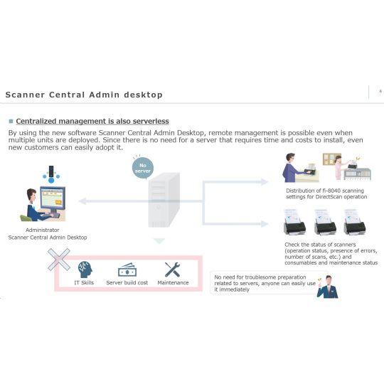 | Software | PaperStream Capture PaperStream ClickScan PaperStream ClickScan Searchable PDF Option Software Operation Panel Error Recovery Guide Scanner Central Admin Agent Network Setup Tool for fi Series fi Series Online Update ABBYY FineReader for ScanSnap (available as download) | |