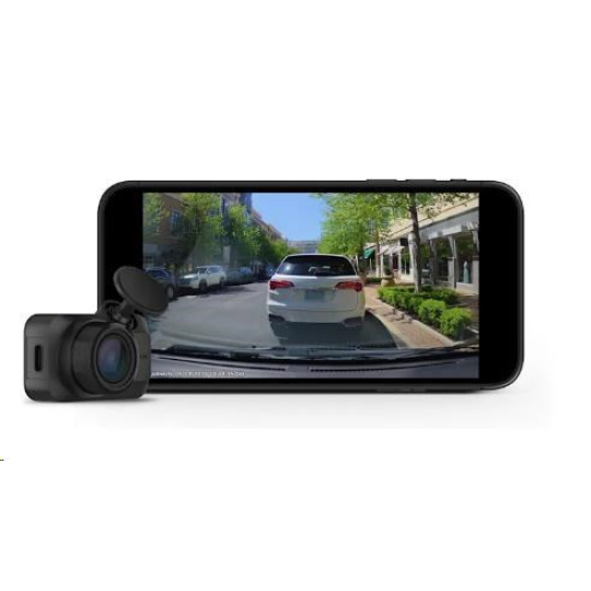Ultra kompaktní záznamová kamera Garmin Dash Cam s hlasovým ovládáním, širokým úhlem záběru a integrovaným polarizátorem zachytí a uloží důležité detaily.
