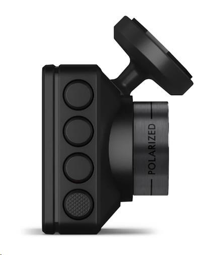 Ultra kompaktní záznamová kamera Garmin Dash Cam s hlasovým ovládáním, širokým úhlem záběru a integrovaným polarizátorem zachytí a uloží důležité detaily.