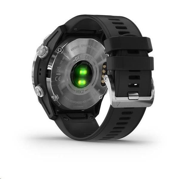 Garmin Descent Mk2 je potápěčský počítač v podobě klasických hodinek, který nabízí funkce všestranného GPS sporttesteru, mapové GPS navigace a chytrých hodinek s vynikající výdrží a odolností. Volné nebo přístrojové potápění, potápění s kyslíkem nebo směsmi, snadné plánování ponorů s výpočtem celkového potřebného času, včetně dekompresních časů a hloubek, měření srdečního tepu pod vodou pomocí optického měření nebo pomocí hrudních pásů, orientace pod vodou pomocí 3D kompasu, zvukové a vibrační alarmy, podsvícený displej, funkce ukládání místa ponoru a vynoření... Nejen tyto, ale i další potápěčské funkce nabízí nové potápěčské hodinky Garmin Descent Mk2 s odolností do 100 metrů dle standardu EN13319.