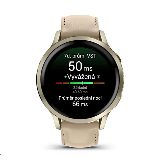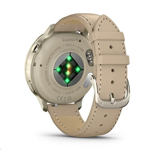Garmin Venu 4 (41 mm) Zlaté / Bílý silikonový řemínek a Light Sand kožený řemínek, EU (upravit kartu)