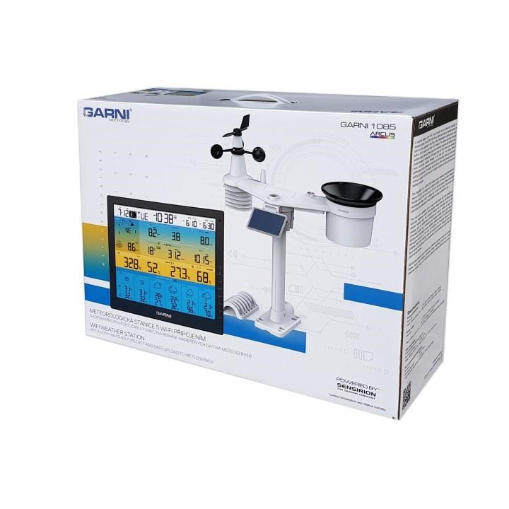 Meteorologická stanice s Wi-Fi, 6denní předpovědí a profesionálním integrovaným bezdrátovým čidlem 7-v-1, model GARNI 1085 Arcus, shromažďuje přesné a podrobné údaje o počasí, které následně v reálném čase nahrává pomocí vestavěného modulu Wi-Fi a místní Wi-Fi sítě na meteorologický server ProWeatherLive. Ten umožňuje automatizované nahrávání údajů z meteorologické stanice a volný přístup ke všem údajům odkudkoliv, kde je přístup k internetu, a to prostřednictvím webového prohlížeče nebo mobilní aplikace. Současně server PWL odesílá do hlavní jednotky informace o dohlednosti, oblačnosti a 6denní předpovědi počasí. Výrobek nabízí solidní výkon všem profesionálním pozorovatelům a nadšencům, a to díky široké škále nastavení a čidel. Stanice vám poskytne místní předpověď, maximální a minimální hodnoty a celkové hodnoty všech meteorologických veličin, to vše, aniž byste museli použít stolní počítač.