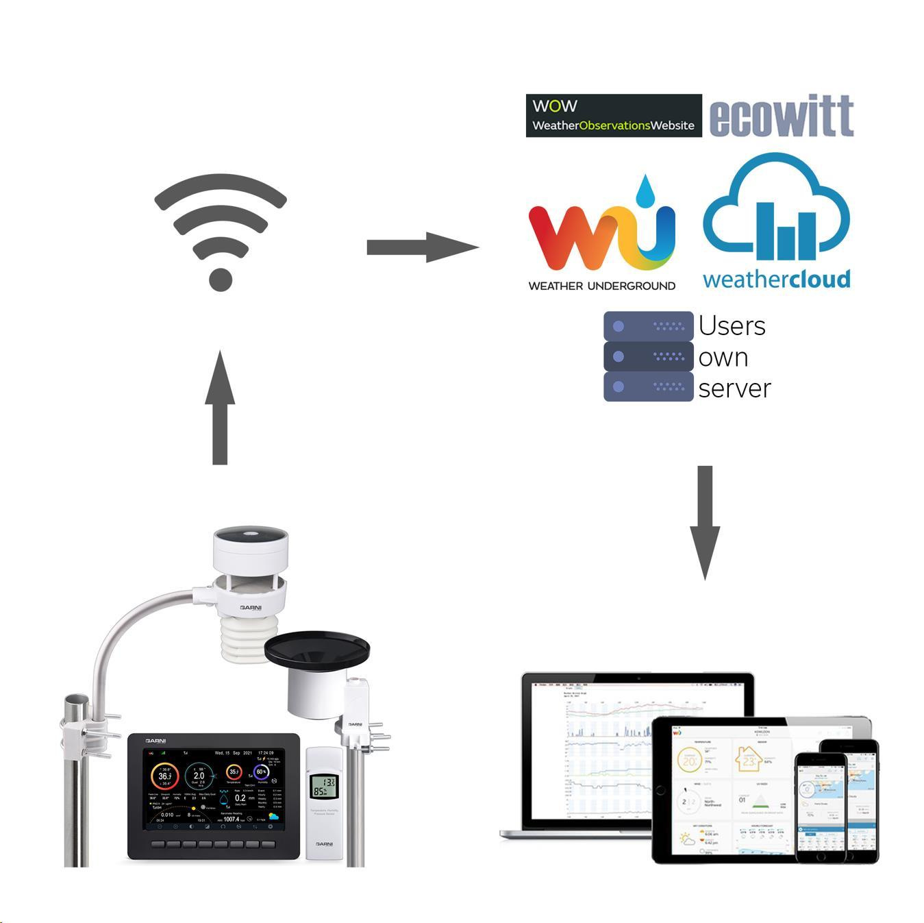 a/nebo Ecowitt - známé meteorologické služby, které umožňují pozorovatelům počasí odesílat své místní údaje o