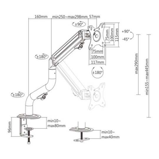 - Odolné nastavitelné plynové pružiny vhodné pro monitory 2 - 8 kg