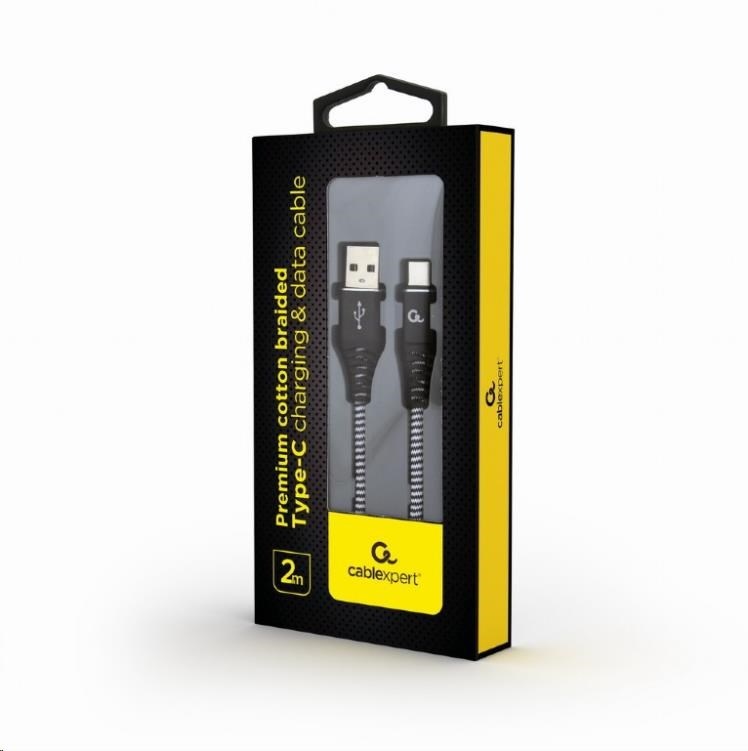 GEMBIRD Kabel USB 2.0 AM na Type-C kabel (AM/CM), 2m, opletený, černo-bílý, blister, PREMIUM QUALITY
