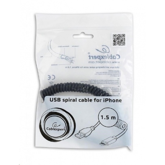 USB sync and charging spiral cable for iPhone, 1.5 m, black